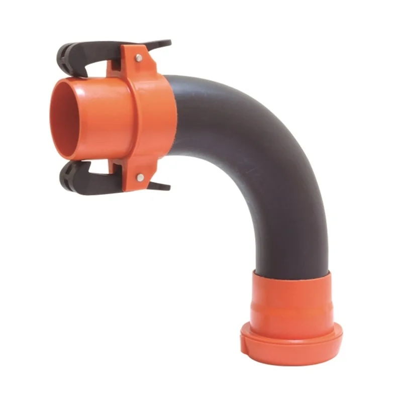 Curva para conexión acople rápido Arpe, incluye sello de goma para medidas de 50, 63, 75 y 110 mm. Fabricado en Europa.
