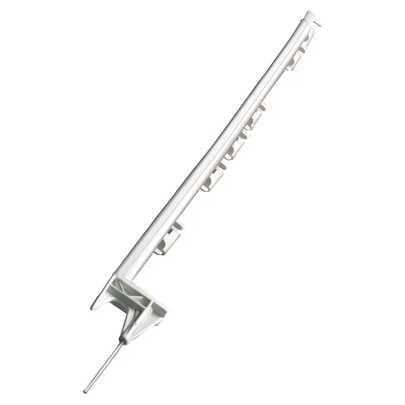 Estaca plástica 86 cm con 8 posiciones tipo U blanca para pastoreo en franjas cerco eléctrico. Venta en formato 10 unidades.