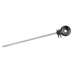 El aislador con tornillo se fija al poste de madera para el paso del cable, disponible en 190 mm. Se pueden utilizar con alambre de acero o alambre y cuerda de polietileno. Hecho en Sudafrica