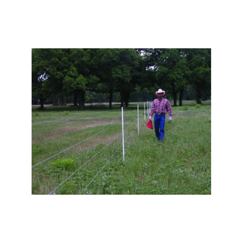 Estaca plástica blanca diseñada para cerco móvil de 12 posiciones. Altura total de 145 centímetros adecuada para equinos. Protección contra rayos UV para una larga vida útil.