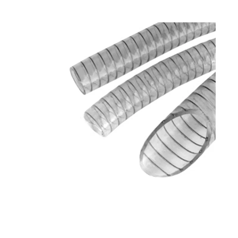 Manguera transparente con espiral metalico, para succion y conduccion de liquidos.