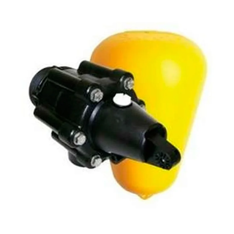 La válvula de bebedero Vortex BA es una válvula con flotador para llenado automático de bebederos y depósitos de agua en general. La válvula está configurada para instalación bajo el agua solamente. El flotador esta conectado a la válvula mediante un cordel de nylon. Cuando el nivel del agua desciende, opera una válvula piloto que activa la válvula principal de diafragma. Vortex es ideal cuando se requiera un gran flujo y una construcción compacta, robusta y resistente a la corrosión. Diámetro 50mm, caudal max. 600 l/m, presión de operación 0,3 a 7 bar.FABRICADO EN NUEVA ZELANDIA.