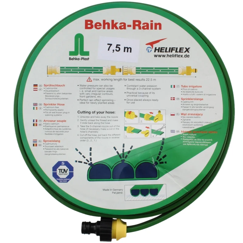 Cinta tricanal de PVC con acoples rápidos para riego de jardines y aplicaciones agrícolas. Caudal 55 l/h/m. En rollos de 7,5 y 15m. Se recomienda poner 22m como máximo para que el sistema funcione en forma adecuada.