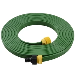 Cinta tricanal de PVC con acoples rápidos para riego de jardines y aplicaciones agrícolas.