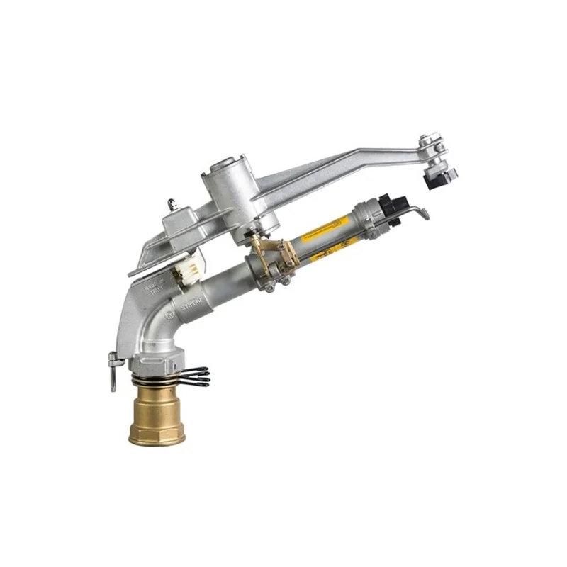 Aspersor mini cañon, de medio y gran caudal. Funcionamiento circular y por sectores, retorno lento. Fabricado especialmente para el riego mediante equipos móviles. También puede ser utilizado en instalaciones móviles o fijas en toda clase de cultivos. Su nuevo concepto de funcionamiento, basado en movimientos extremadamente suaves y silenciosos, elimina vibraciones y golpes que podrían ocasionar el volcamiento de carros o patines, asegurando de tal forma la más completa seguridad para el operador. Un dispositivo especial corta - chorros de intermitencia, funciona sólo en reversa, asegurando una distribución óptima incluso en proximidad del regador y posibilita el máximo alcance en el movimiento hacia delante. Conexión 2" HI. FABRICADO EN ITALIA.