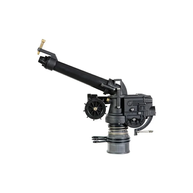 Aspersor con turbina, de pequeña y media capacidad, para medias presiones, con rotación uniforme circular y por sectores. Está provisto de toberas intercambiables y de un quebrachorro que se puede reglar con interferencia fija o intermitente. La gran uniformidad y suavidad de la lluvia a lo largo del chorro lo hacen especialmente apropiado para la irrigación racional de tierras con siembras jóvenes, de cultivos delicados listos para germinar, de hortalizas y plantas ornamentales. Por su ligereza y completa protección de sus mecanismos conviene muy especialmente en las instalaciones móviles de cualquier dimensión. Conexion 1 1/2" HI. FABRICADO EN ITALIA.