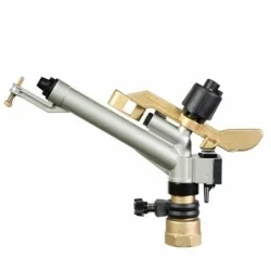 Aspersor de media capacidad. Con funcionamiento circular y por sectores. Esta provisto de toberas intercambiables y de un quebrachorro con regulación de penetración, que asegura una precipitación sutil uniformemente distribuida. Entre sus características sobresalen especialmente la gran simplicidad de los mecanismos y la extraordinaria versatilidad de empleo. Es apto para cualquier tipo de instalación y útil para tierras de cualquier naturaleza y extensión. Conexión 1 1/2" HI. FABRICADO EN ITALIA.