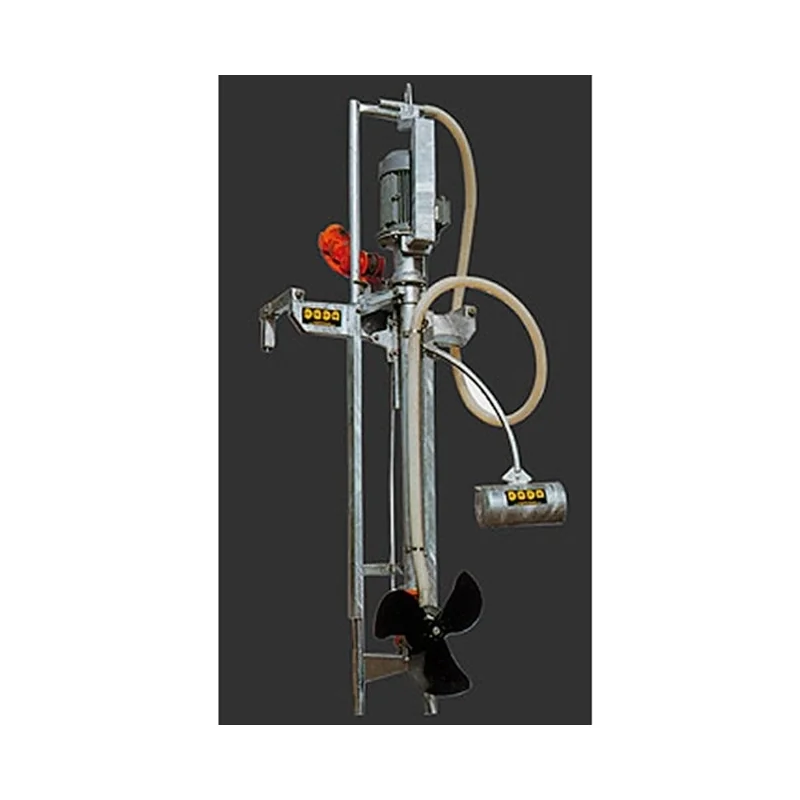 DESCRIPCIÓN:La máquina que se describe es un Movred, agitador- aireador de palas con transmisión vertical, con gran potencia de mezclado. La transmisión del movimiento se efectúa a través del motor eléctrico.La hélice es particularmente interesante, ha sido estudiada para permitir la aspiración y disgregación del aire en partículas diminutas para una mejor homogeneización de los residuos. Disponible en la versión con dispositivo de regulación del nivel de mezclado manual o automático, se puede convertir también en un simple mezclador en aquellas instalaciones en las que se tenga que mantener la homogeneidad de la masa tratada sin dispersión de los gases característicos para la producción de BIOGAS.La estructura cincada, el sistema de transmisión de baño de aceite y la calidad de los materiales empleados garantizan larga duración de la máquina y una sencilla mantención.