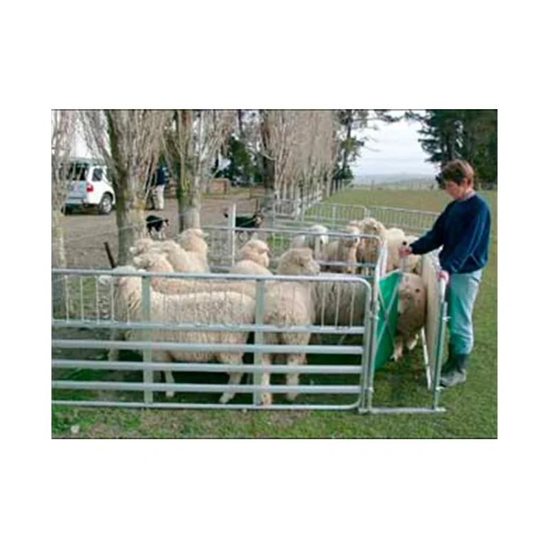 Este corral es ideal para realizar manejos como clasificación, aplicación de medicamentos, esquila y remoción de cola. Son fácilmente portables, livianos y pueden ser operados por solo una persona. Incluye 6 paneles de aluminio de 2,1m y 1 puerta de manejo.
