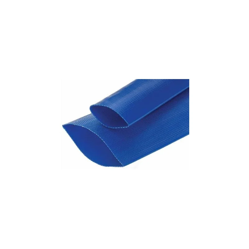 Manguera plana de PVC de uso general para la descarga de agua con media presión, especial para matriz de goteo y resistente a la torsión. Manguera plana para media presión especial para riego por goteo. Presión de trabajo 5 a 3 bar dependiendo medida. Color azul. Origen Korea. Starhose