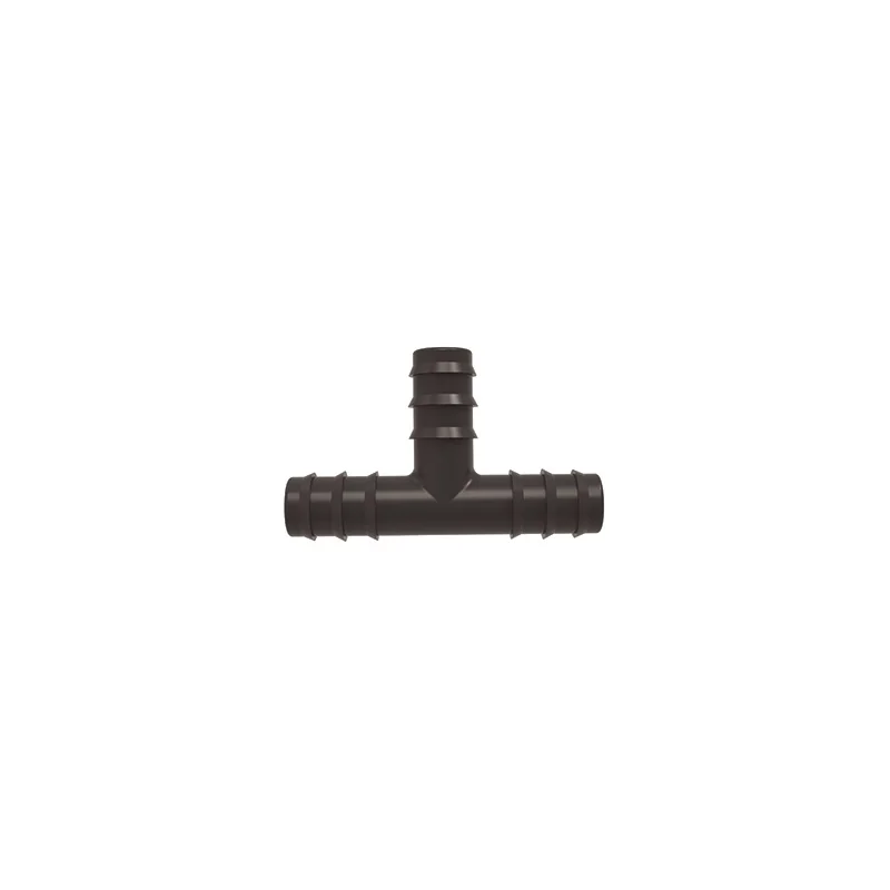 Accesorio de riego para goteo u otras aplicaciones de riego Tee PP Barbada 16mm, venta en bolsas de 100 unidades.